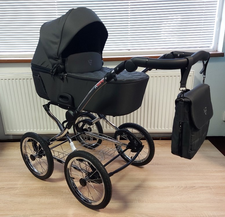 Houpací Kočárek Elegant V3 kombinovaný - Barva: Černá, Kola: Retro kola 14" 4x4, Druh kol: Nafukovací